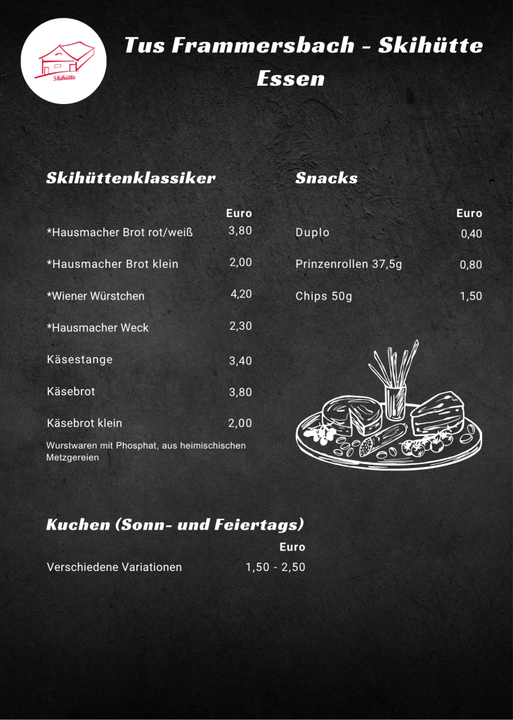 Außerdem kann die Skihütte für private Feiern gemietet werden. Dazu wenden Sie sich bitte an Dieter Kißner (Kontaktdaten siehe unten).
